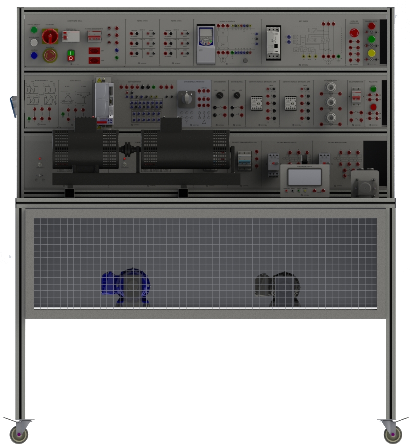 - Possui um conjunto de máquinas acopladas para o estudo de geração e consumo de energia elétrica.