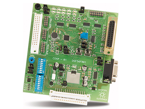 O cartão CDSP 01 DSP56F801, apresenta memória de programa e de dados separadas, memória flash de programa. A comunicação com o micro é realizada via porta paralela do PC com conector DB25 e ainda contém interface serial RS232 com conector DB9, conectores SPT e DIM-48 para acesso aos pinos de I/O dos periféricos temporizador, PWM, conversor A/D e GPIO/serial. Pode ser utilizado individualmente ou conectado ao módulo universal 2000.