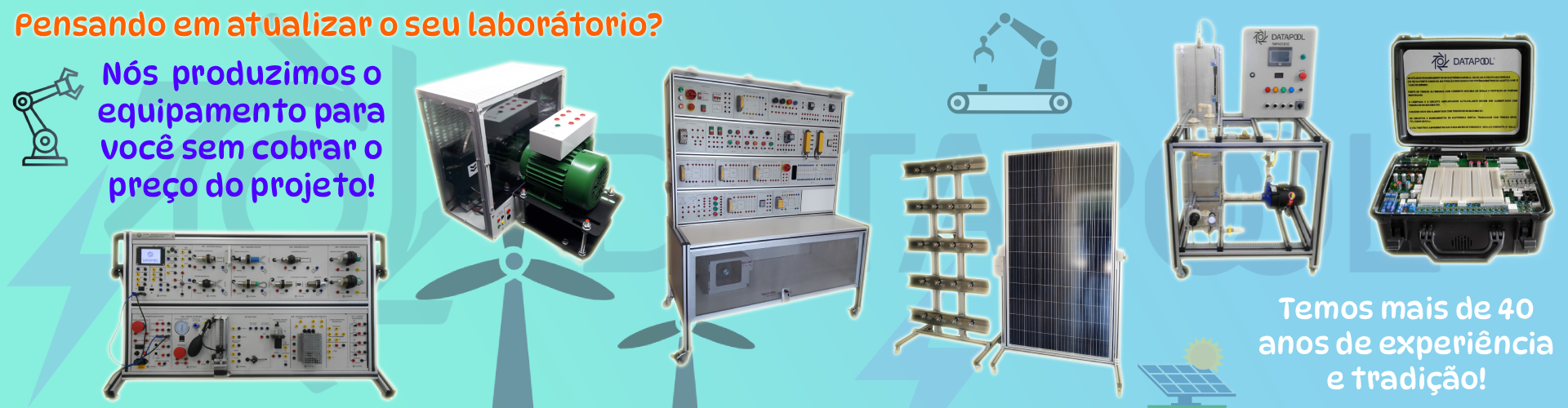 A Datapool Eletrônica é uma empresa nacional, que há mais de 40 anos desenvolve e fabricaMódulos Didáticos para laboratórios de Eletroeletrônica (eletricidade, eletrônica básica, digital e de potência), Eletrotécnica, Energias Renováveis, Controle e Automação, Microcontroladores / Microprocessadores, Comunicações entre outros. Estamos presentes nas mais variadas universidades, escolas técnicas e centros profissionais do país.